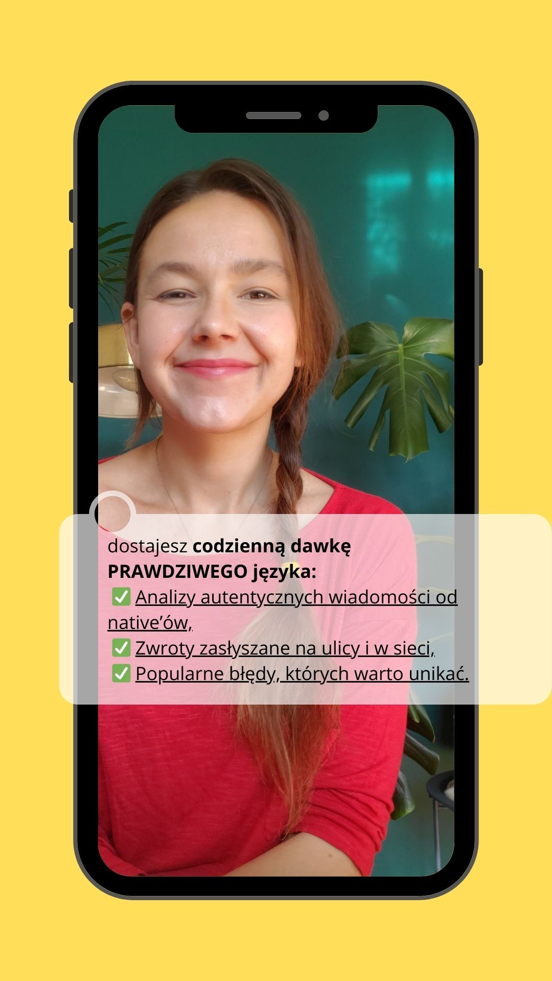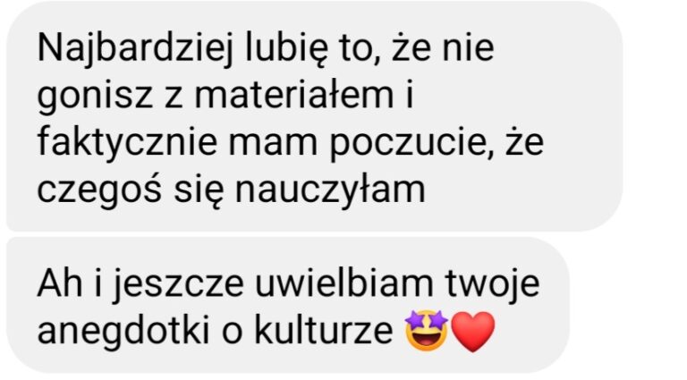Nie – to dodatek do nauki, który pomoże Ci utrzymać kontakt z językiem między zajęciami i wycisnąć więcej z tego, co już umiesz.