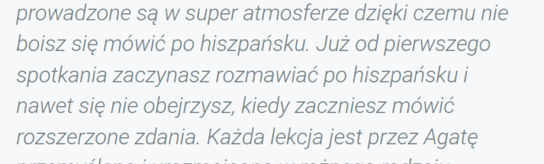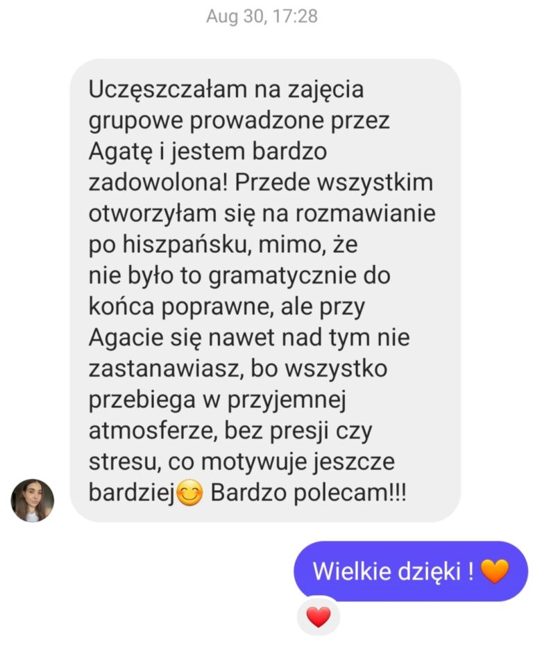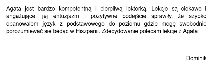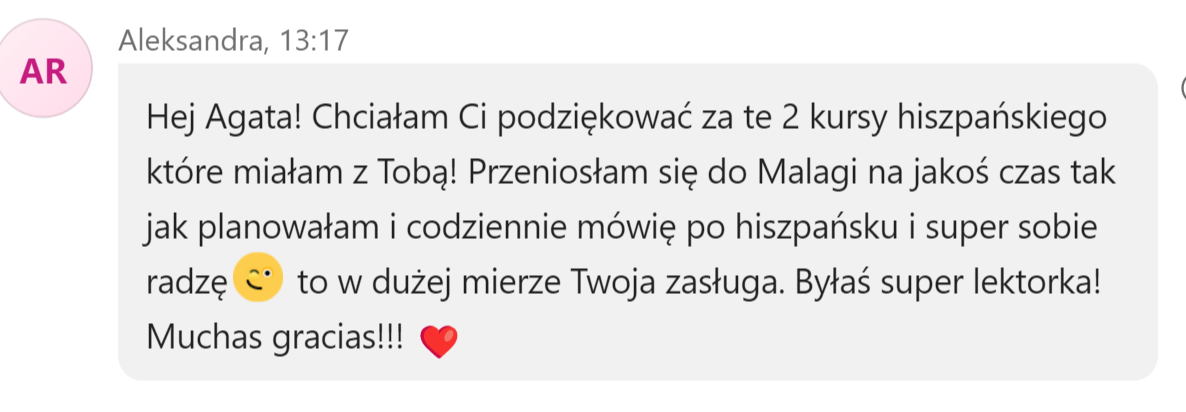 Nazywam się Agata i od lat pomagam dorosłym ogarnąć hiszpański w praktyce – bez spiny, bez zbędnych regułek i bez uczenia się rzeczy, których nikt nie używa.
